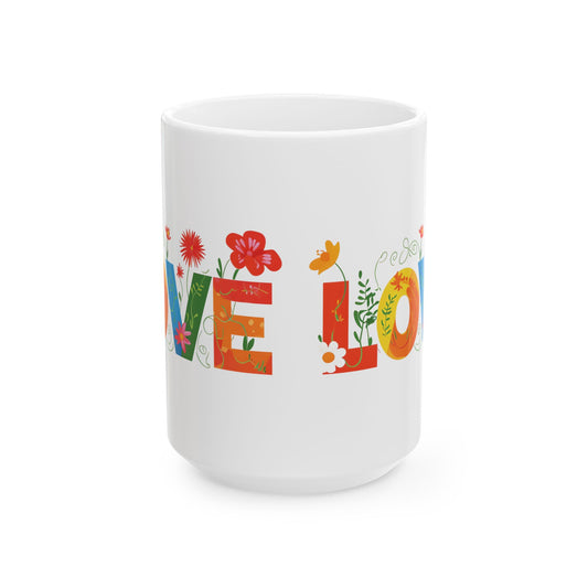 Flower Power Love Mug, Cute Coffee Mug, Gift for Her, Spring Decor, Colorful Tea, spring flowering coffee mug